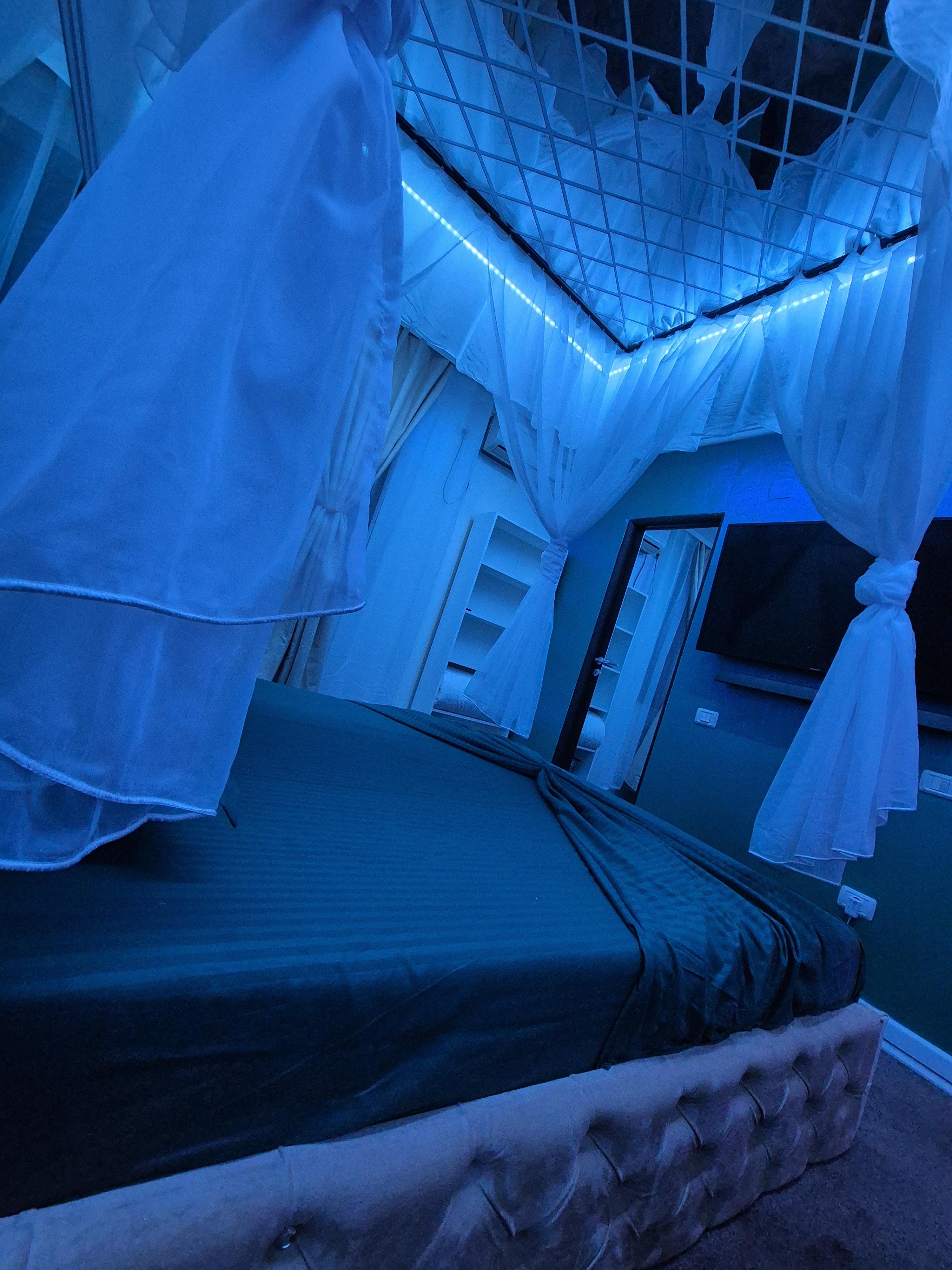 Aceasta camera are o suprafata de 25mp, pat cu baldachin, TV smart, masina de cafea, prosoape, articole de baie, sistem pentru muzica iar baia este prevazuta cu cada.