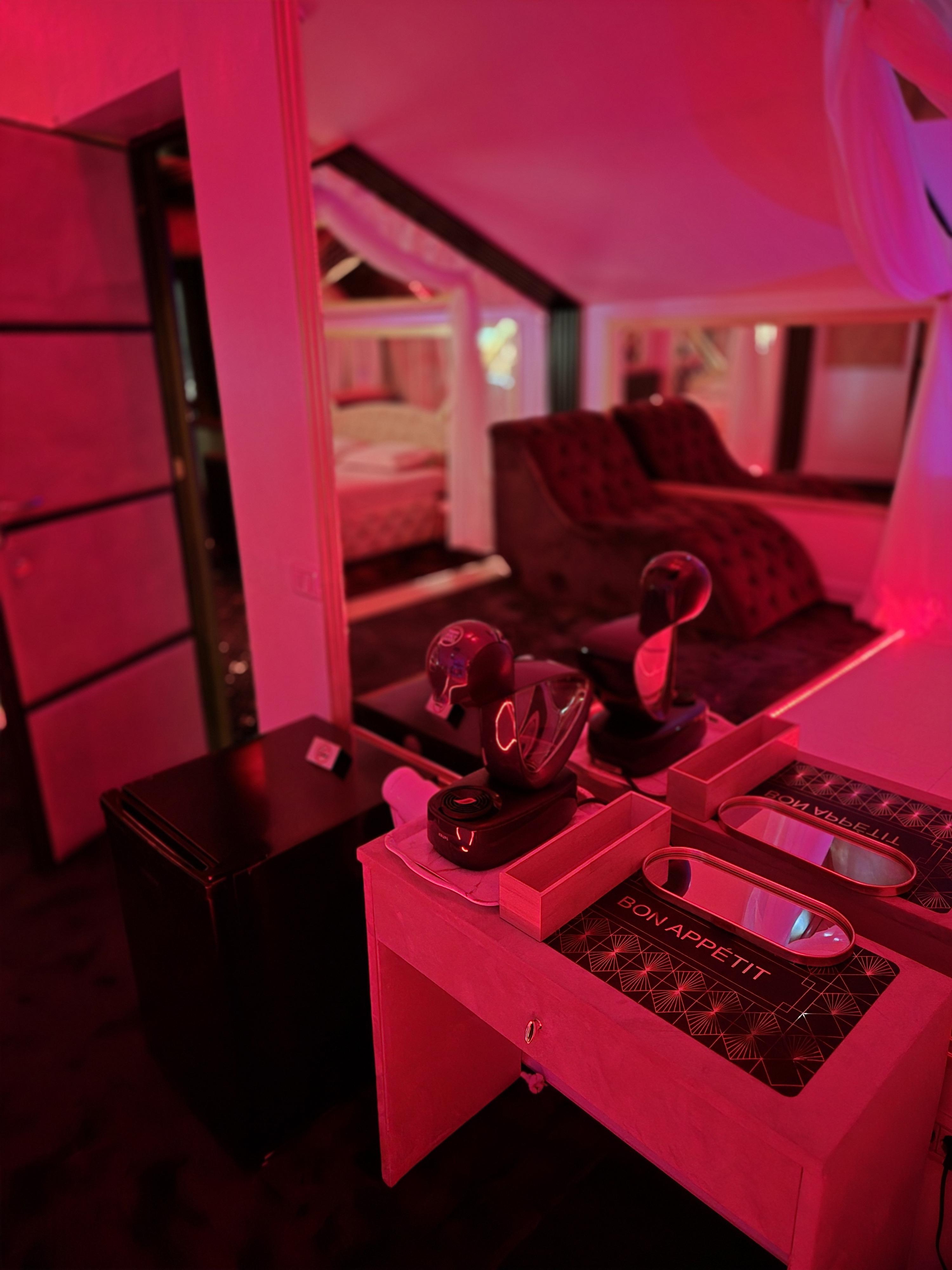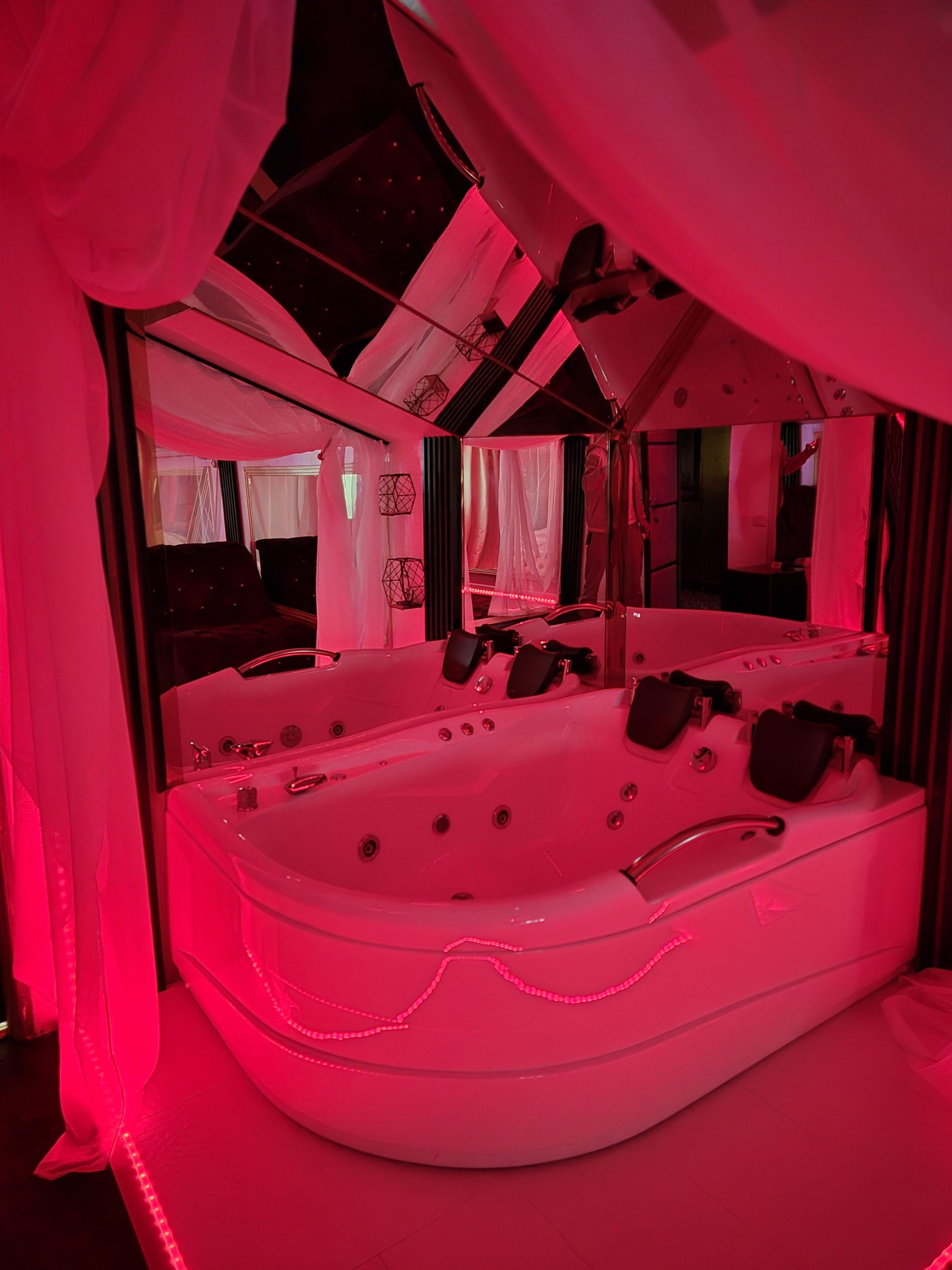 Aceasta camera are o suprafata de 38mp, pat cu baldachin, TV smart, masina de cafea, prosoape, articole de baie, sistem pentru muzica , cada cu hidromasaj in camera, iar baia este prevazuta cu dus.
