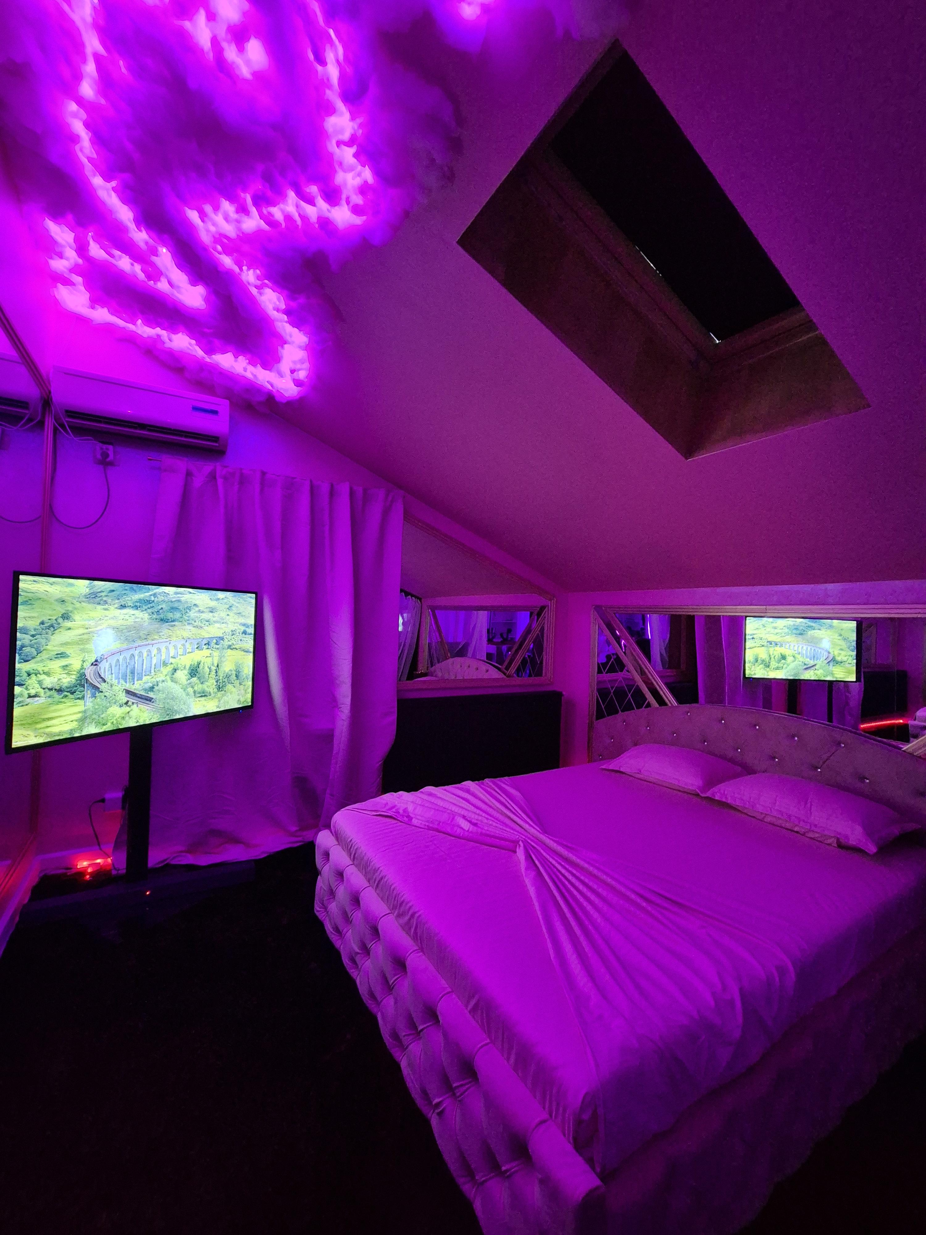 Aceasta camera are o suprafata de 28mp, pat cu baldachin, TV smart, masina de cafea, prosoape, articole de baie, sistem pentru muzica iar baia este prevazuta cu cada.