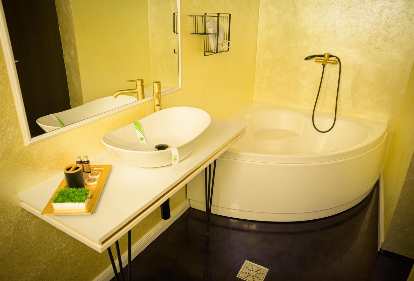 Aceasta camera are o suprafata de 38mp, pat cu baldachin, TV smart, masina de cafea, prosoape, articole de baie, sistem pentru muzica , cada cu hidromasaj in camera, iar baia este prevazuta cu dus.
